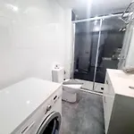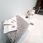 The apartment offers guests the convenient feature of towels in the bathroom. Additionally, you'll find a separate toilet, a shower, and a washing machine.